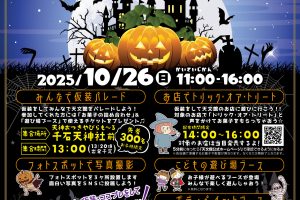 お菓子がもらえるお店はこちらから。(10月26日の13時55分から公開します。) ●鹿児島県美容専門学校の生徒さんのご協力で、ボディペイントを実施します。※有料 パレード開催中は休止いたします。 ●みんなで仮装パレード 先着300名(お子様限定) 集合場所:千石天神社 集合時間:午後1時(13時20分ごろ出発予定) ●フォトスポットで写真撮影 ●お店でトリックオアトリート 14時か … 続きを読む ハッピーハロウィン in 天文館 2025