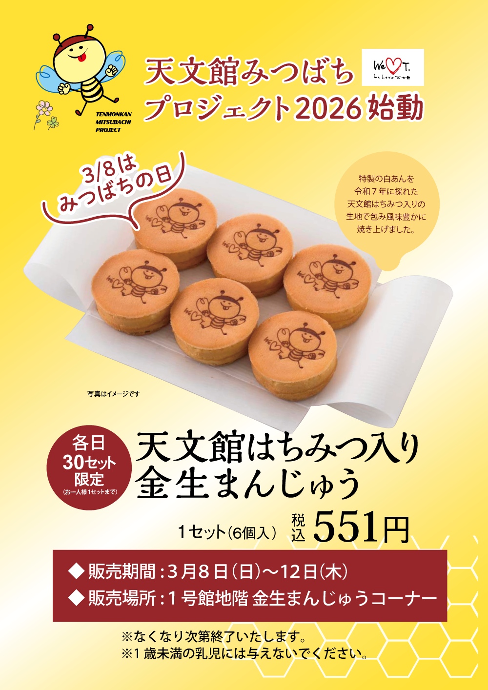 特製の白あんを令和7年に採れた天文館はちみつ入りの生地で包み、風味豊かに焼き上げました。
